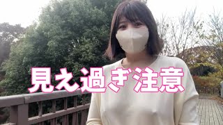 公園内をノーブラで移動する人妻