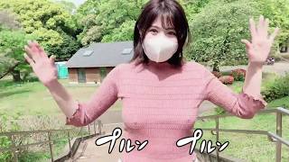 右腕のストロークで揺れるノーブラポッチ