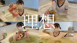 - 裸にTシャツ姿で泡風呂に入ってみました///